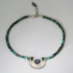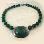 2011Gezwart zilveren collier met eilatsteen en malachiet