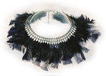 2011Uit de serie Veertjescolliers: Gezwart zilver, zwarte marabo-veren en koraal